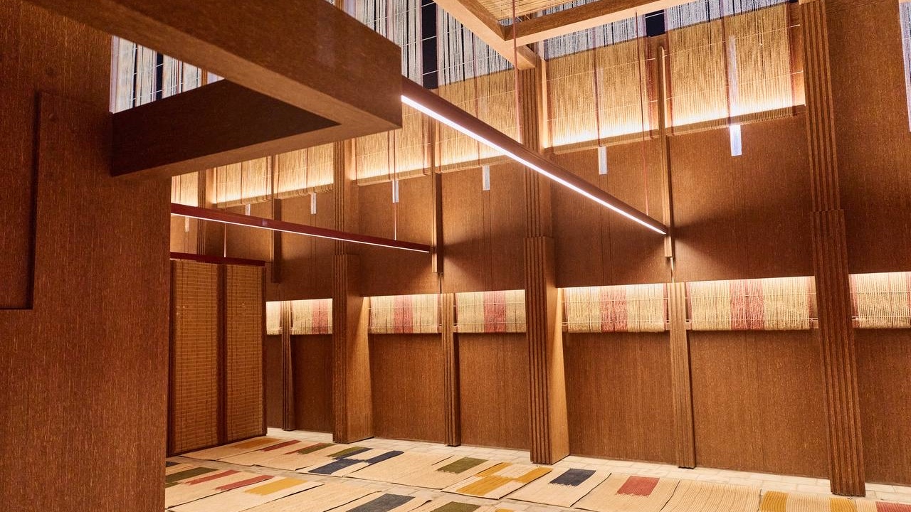 Designed by EAST Architecture Studio with AKT II engineers and artist Rayyane Tabet, the structure is modular, elegant and almost entirely made from palm tree waste. It can be assembled and disassembled as needed, making it both sustainable and deeply nomadic, a fitting tribute to the cultures that once moved along the Silk Roads.