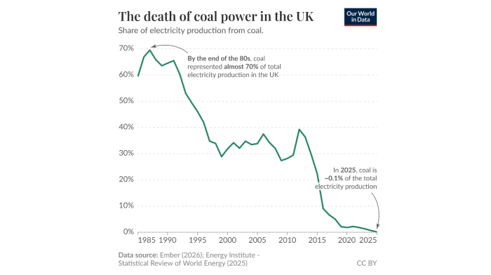 The United Kingdom was the birthplace of coal. It has now, effectively, died there, Our World in Data reprots.
