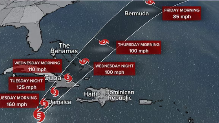 A catastrophic Category 5 hurricane was bearing down on Jamaica on Monday, October 27 afternoon with sustained winds of up to 282kph (175mph), threatening to become the strongest storm the Caribbean island has ever experienced.