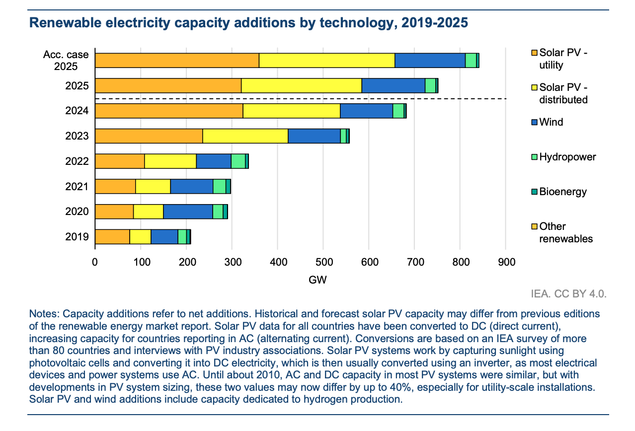 The report highlights a surge in solar capacity, which is expected to double over the next five years, driven by declining costs and improved permitting frameworks.