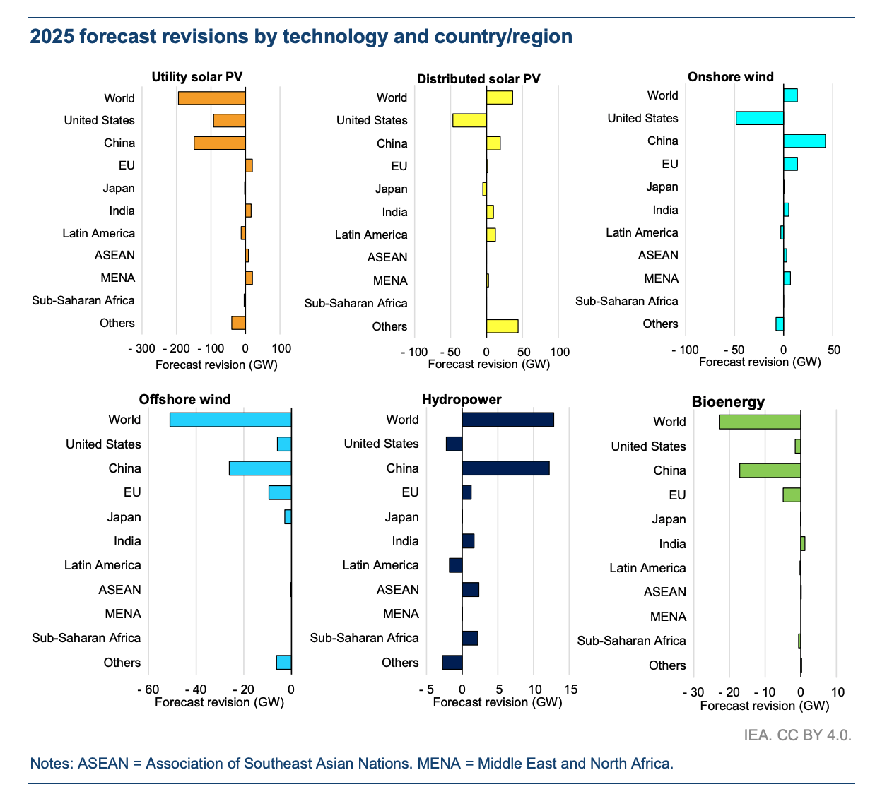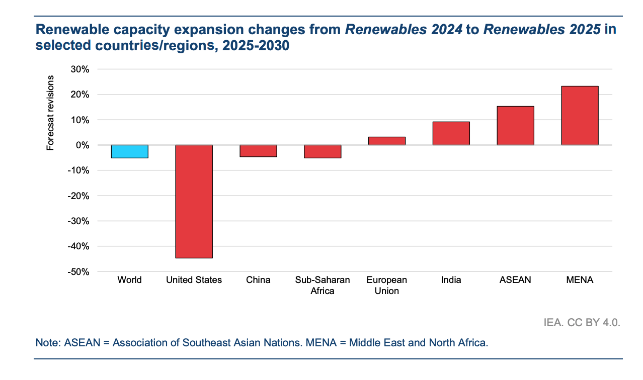 Despite the headline growth, the IEA has revised its forecast downward by 5% from its 2022 estimate, citing slower policy progress in China and reduced momentum in the United States. “The downward revision is mainly due to lower expectations for China’s onshore wind and distributed solar PV and the United States’ large-scale solar PV and onshore wind projects,” the report stated.