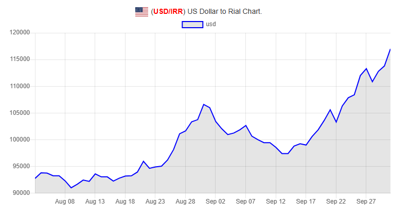 The Iranian rial has depreciated approximately 26% against the US dollar over the past two months, with the exchange rate climbing from around IRR930,000 in early August to IRR1,175,000 by October 2, following a succession of negative headlines including the reimposition of new economic sanctions by the EU, Canada, the US and Britain.