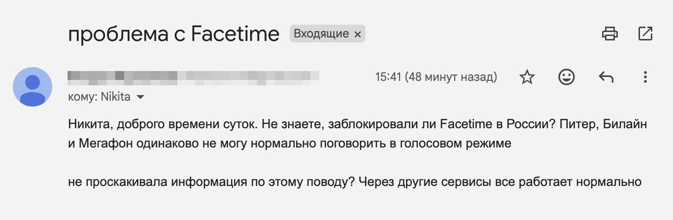 At that time, Roskomnadzor had not announced any restrictions on the service. Apple had also not reported technical issues with FaceTime, and no similar complaints emerged from users outside Russia during the same period.