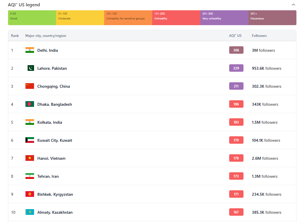 Snow on the Alborz mountain range and winds have helped push Tehran to the 8th-worst city for PM2.5 levels on December 2; however, it previously topped the charts throughout the previous week. India, China, Kuwait, and Pakistan have now passed the Iranian capital.